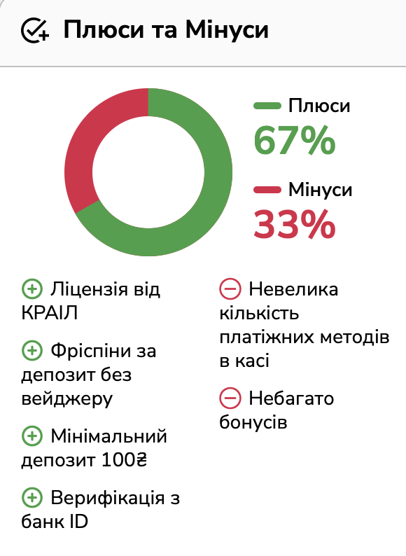 Загальна оцінка: казино заслуговує на довіру, але потребує покращення швидкості виплат та спрощення бонусних умов. Для більшості українських гравців це хороший вибір серед ліцензійних операторів.