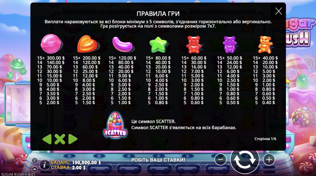 Грати в Sugar Rush слот на реальні гроші — це справжня можливість відчути азарт і отримати справжній виграш. Саме ставки на гроші відкривають повний потенціал цього слоту, адже тільки у реальному режимі можна поборотися за максимальний виграш до x5000 від ставки. Тут кожен спін стає шансом зірвати великий куш, а різноманіття ставок дозволяє підлаштувати гру під власний бюджет — від обережних мінімальних до високих ставок для досвідчених гравців.